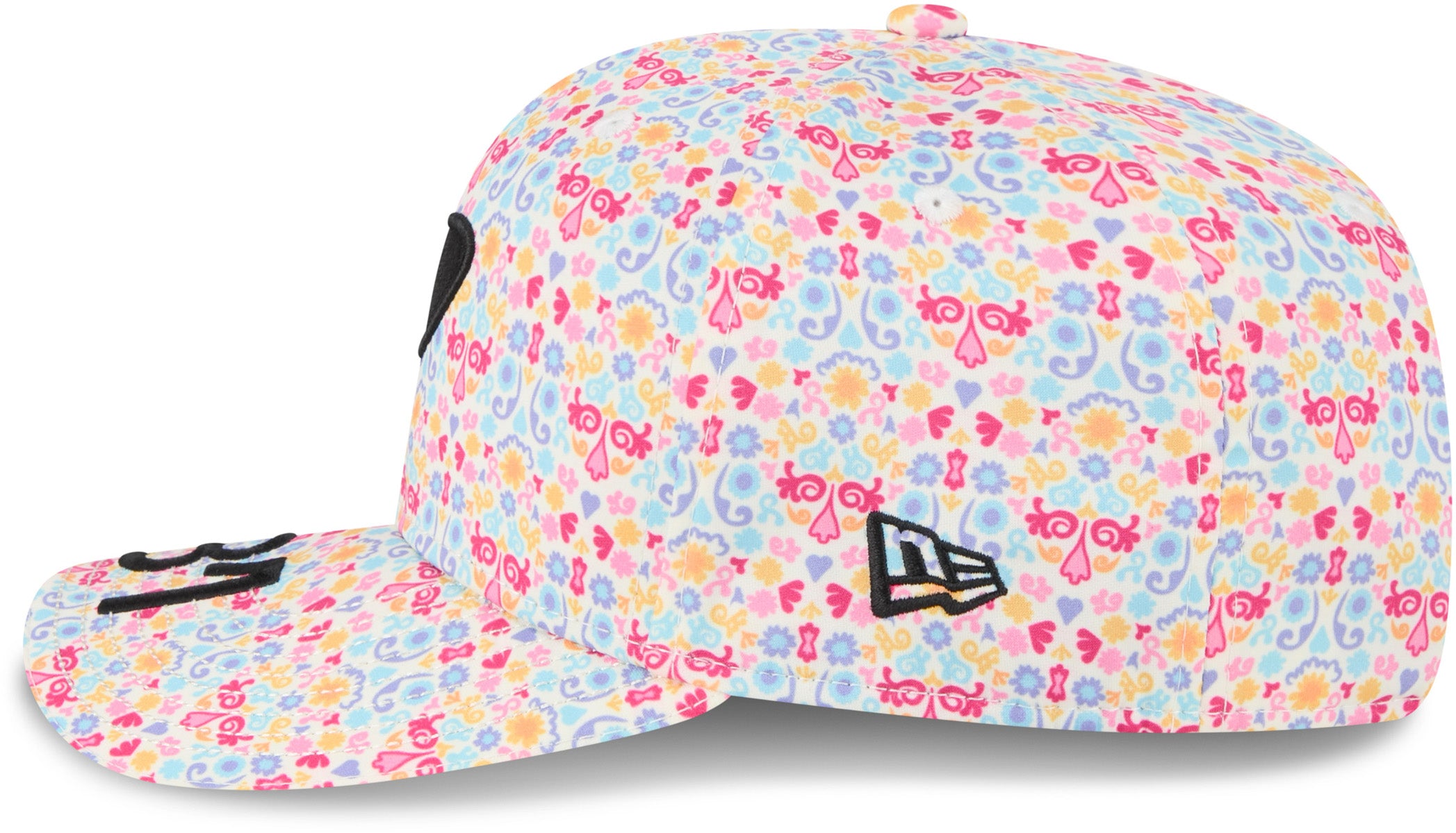 McLaren F1 New Era 9Seventy Brazil GP Oscar Piastri Driver Stretch Snapback Cap. Comfort Stretch Fit, with a Structured Front Crown, and the Pre Curved Visor. Off White, with the McLaren F1 logo, the New Era Flag and Team sponsor, side logo's, the Team rear tag, and the Aqua Blue Visor, with the Brazil GP Flower embroidery, the Driver Race numb...