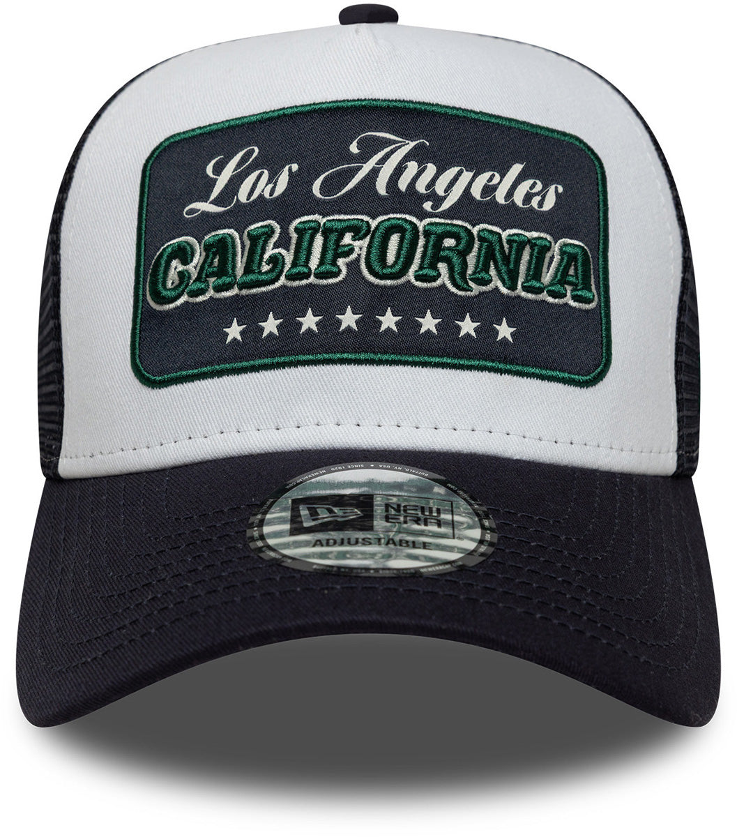 Los Angeles California New Era Location Patch Navy Trucker Cap