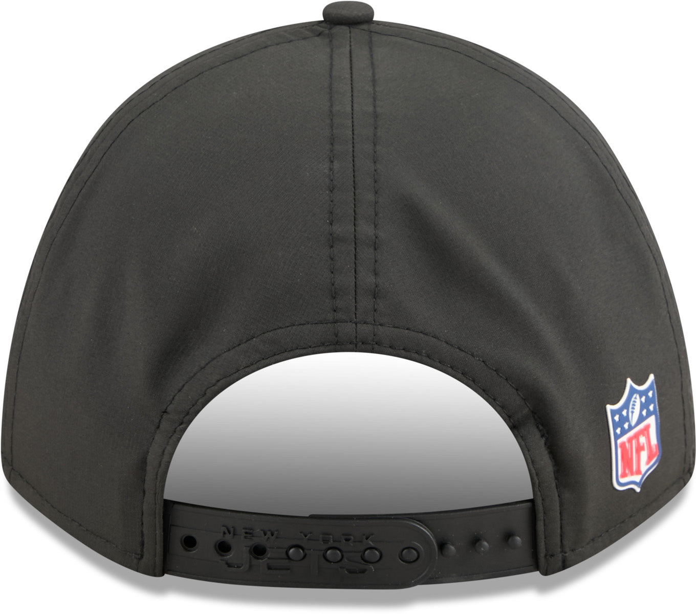 New York Jets NFL Sideline 2025 New Era 9Seventy Stretch Snapback Cap Structured Crown, with the Pre-Curved Visor. Black, with the New York Jets front patch logo, the New Era flag side logo, and NFL rear logo, on the Mesh Backing, and the Team colour stripes on the underside of the Visor. Adjustable rear Snapback strap, with the embossed Team ...