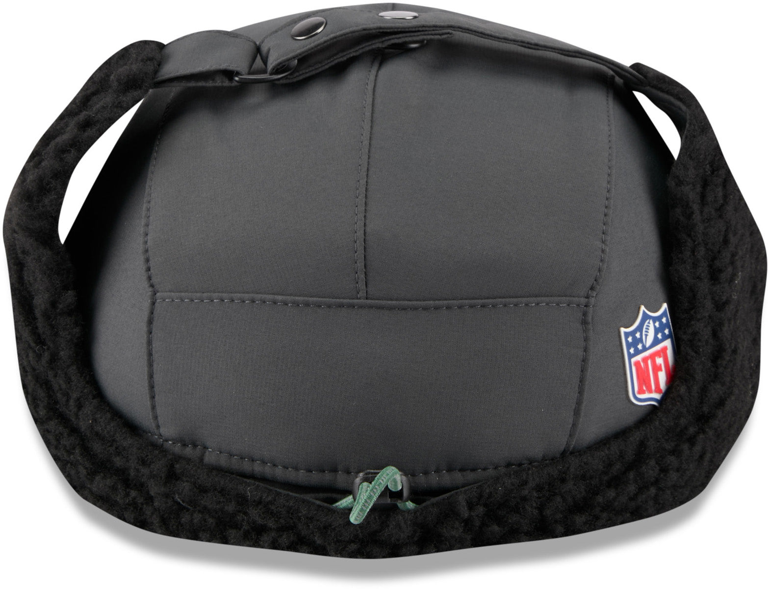 Las Vegas Raiders New Era Sideline 2025 Cold Weather Runner Dog Ear Adjustable Cap. Official Sideline NFL Team merchandise. Black wipe clean fabric, the Stitch detail front panel, with the Rubberized Las Vegas Raiders front logo, the New Era flag side logo, the NFL rear logo, and the adjustable rear toggle. The cap is fully fur lined, with t...